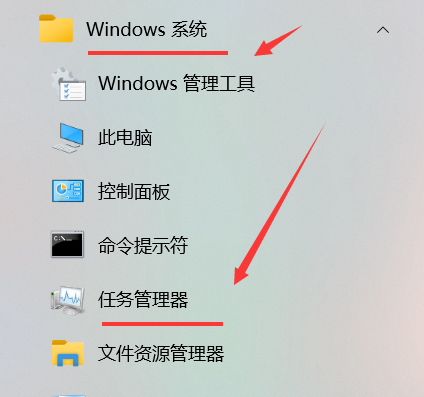 2、找到windows管理系统,找到任务管理器,在这里可以看到控制面板,命令提示符(cmd),文件资源管理器等。