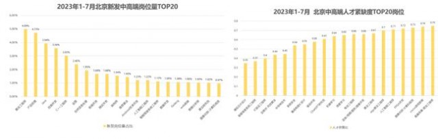 从北京新发岗位的类型来看,算法工程师成为新发中高端岗位量占比最高的工种,达到4.99%。在新发岗位占比TOP20中,人工智能类岗位有7类,总占比超过12.73%。从新发岗位的人才供需比来看,模拟芯片设计人才最为紧缺,供需比仅为0.35,相当于3个岗位争夺1个人才。