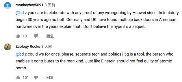 有意思的是,当下面一位网友质疑华为一定与中国政府有关联,使用华为设备肯定不安全时,这位昵称为monkeyboy5091的美国网友和原楼主都进行了回击: