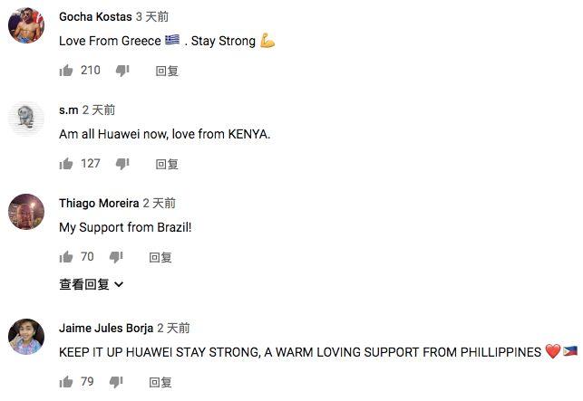 评论区还有来自世界各地的网友表示,会用实际行动支持华为:
