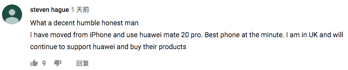我已经从苹果手机换到华为mate20pro了,这是目前用过的最好的手机。我在英国,会一直支持华为,也会一直使用华为手机。