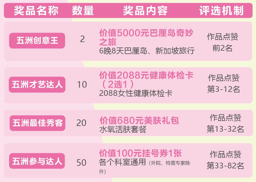 获奖名单最终由五洲抖音官方号@北京五洲妇儿医院评定、通知;8月2日开奖公布获奖名单,奖品领取日期为8月2日至8月16日。