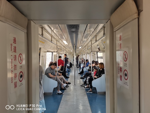 下面我们来亲身体验一下这款手机的能力,在地铁上的昏暗光线下,P30 Pro依旧能够得到曝光良好的照片。