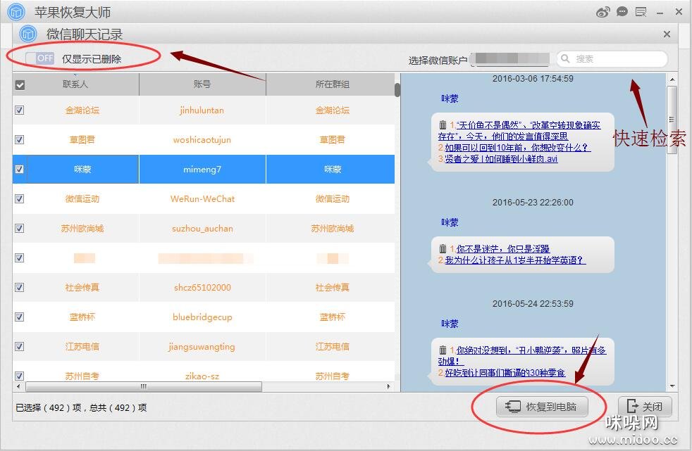 苹果恢复大师恢复已删除的微信聊天记录具体操作步骤: